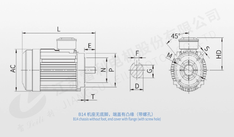 B14 chassis without foot, end cover with flange (with screw hole)